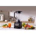Acest blender este combinatia ideala intre performante deosebite si un design compact, are cana din plastic de capacitate 1.85 l, 3 viteze de operare si functie turbo, lame din otel inoxidabil ce grabesc procesul de macinare, carcasa este fabricata din plastic cu decoratiuni electroplacate.