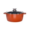 Cratita din aluminiu turnat tip tuci , placata cu ceramica marmorata , cu capac din sticla termorezistenta , pentru prepararea gemului , sosului din tomate , 24 cm , 4.50 l , Grunberg GR1004