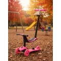 Odata ce copilul este pregatit sa se plimbe singur cu aceasta jucarie , aceasta se transforma usorin trotineta .Manerul este reglabil in inaltime - 3 trepte.   Â