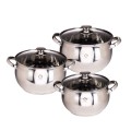Setul GR10573 are 3 oale din inox si 3 capace din sticla termorezistenta . Oalele sunt fabricate din otel inoxidabil ,  rezistent la temperaturi mari. Produsele au manere confortabile , pot fi spalate si in masina de spalat vase.