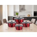 Set 8 piese: 4 vase din aluminiu, compatibile cu plita cu inductie, cu capace din sticla, Grunberg GR2716 (rosu)