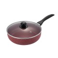 Tigaie din aluminiu cu interior si exterior rosu marmorat, cu capac din sticla, 24 x 7 cm , Grunberg BB24